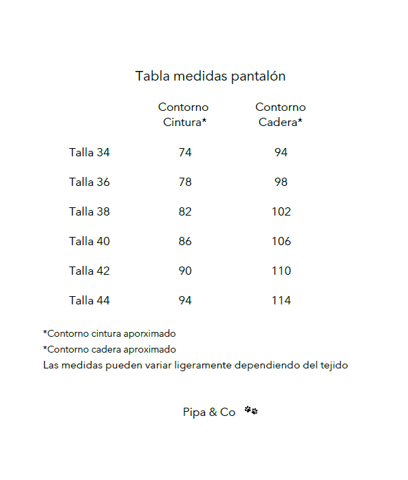 | Talla | 34, 36, 38, 40, 42, 44 |
