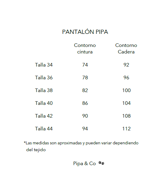 | Talla | 34, 36, 38, 40, 42, 44 |